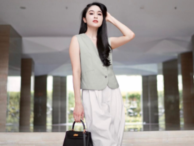 5. Bergaya kekinian ke kantor pakai sleeveless blazer yang trendi. Cukup pasangkan dengan wide pants dan sneakers yang simpel.
