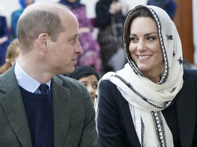 Kate mengenakan kerudung putih dengan sulaman benang hitam. Ini diproduksi oleh Jenama Pakistan Elan. Bukan cuma sekali Kate berpenampilan seperti ini, karena pada 2019 saat mengunjungi Pakistan, kerudung yang sama dia kenakan.