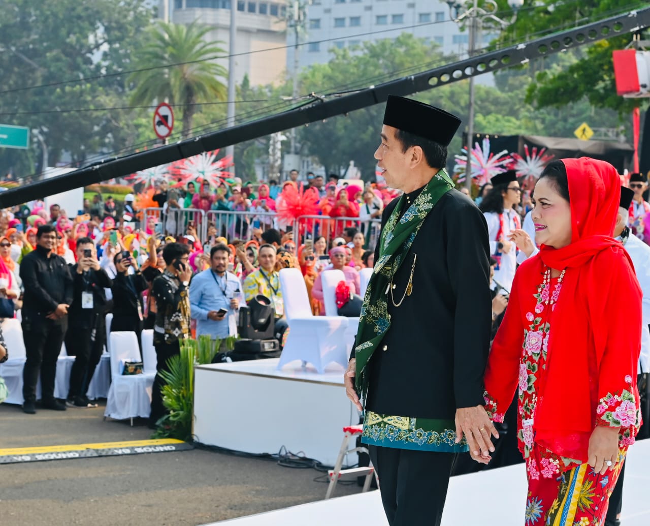 Presiden Joko Widodo dan Ibu Iriana Joko Widodo membuka acara Istana Berkebaya digelar di Jalan Medan Merdeka Utara, tepat di depan Istana Merdeka, Jakarta, pada Minggu sore, 6 Agustus 2023.