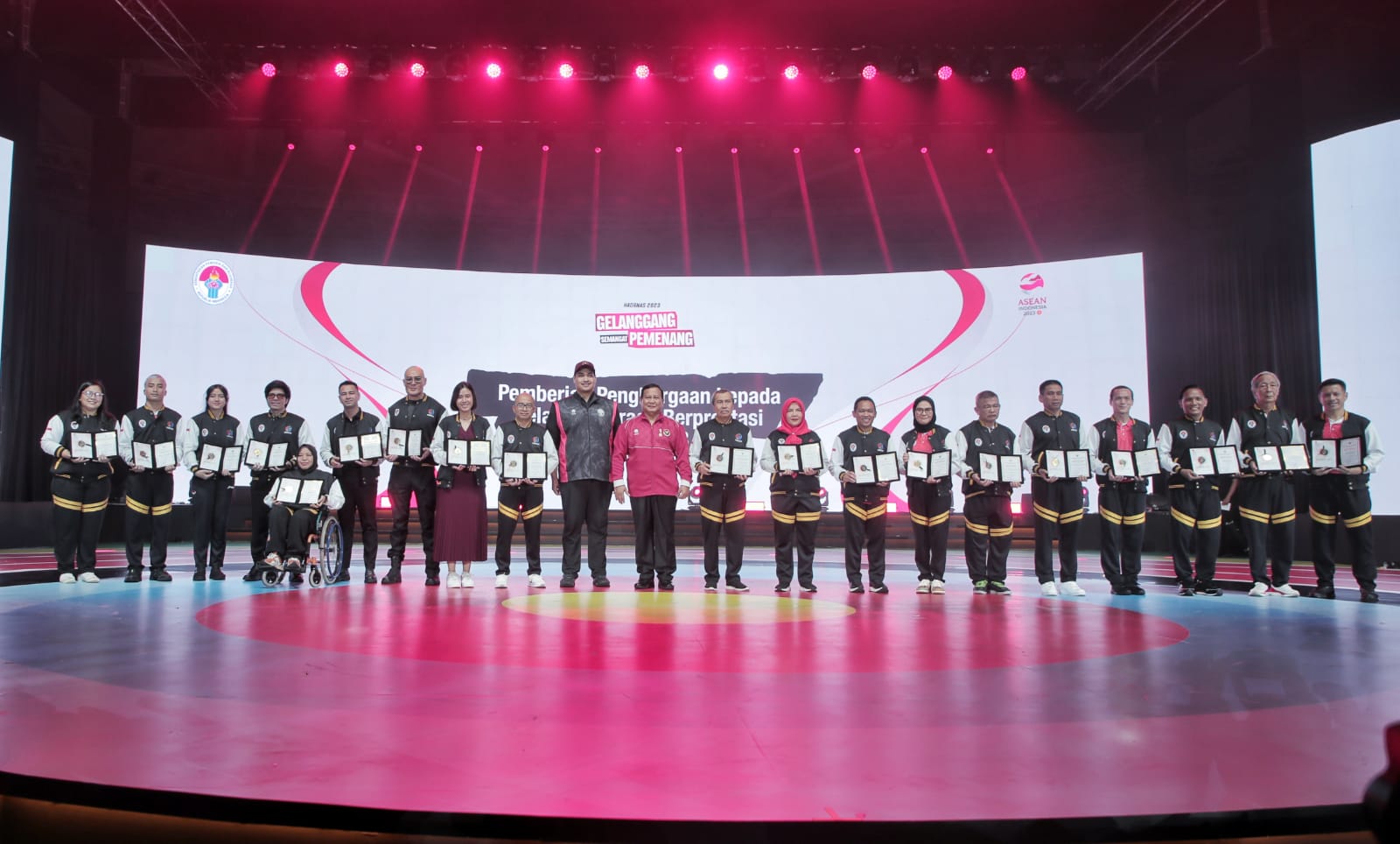 Setelah pembukaan, Haornas memberikan penghargaan kepada para pelaku olahraga berprestasi, dan mengenalkan jersey resmi Tim Indonesia yang akan tampil di Asian Games 2023 Hangzhou, 23 September sampai 8 Oktober.
