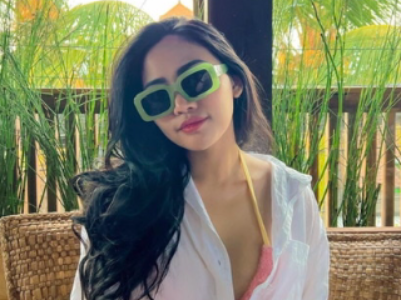 Oversized t-shirt juga bisa dikenakan sebagai outer bikini seperti yang dikenakan Rachel Vennya, pasangkan juga green sunglasses untuk menyempurnakan penampilan.